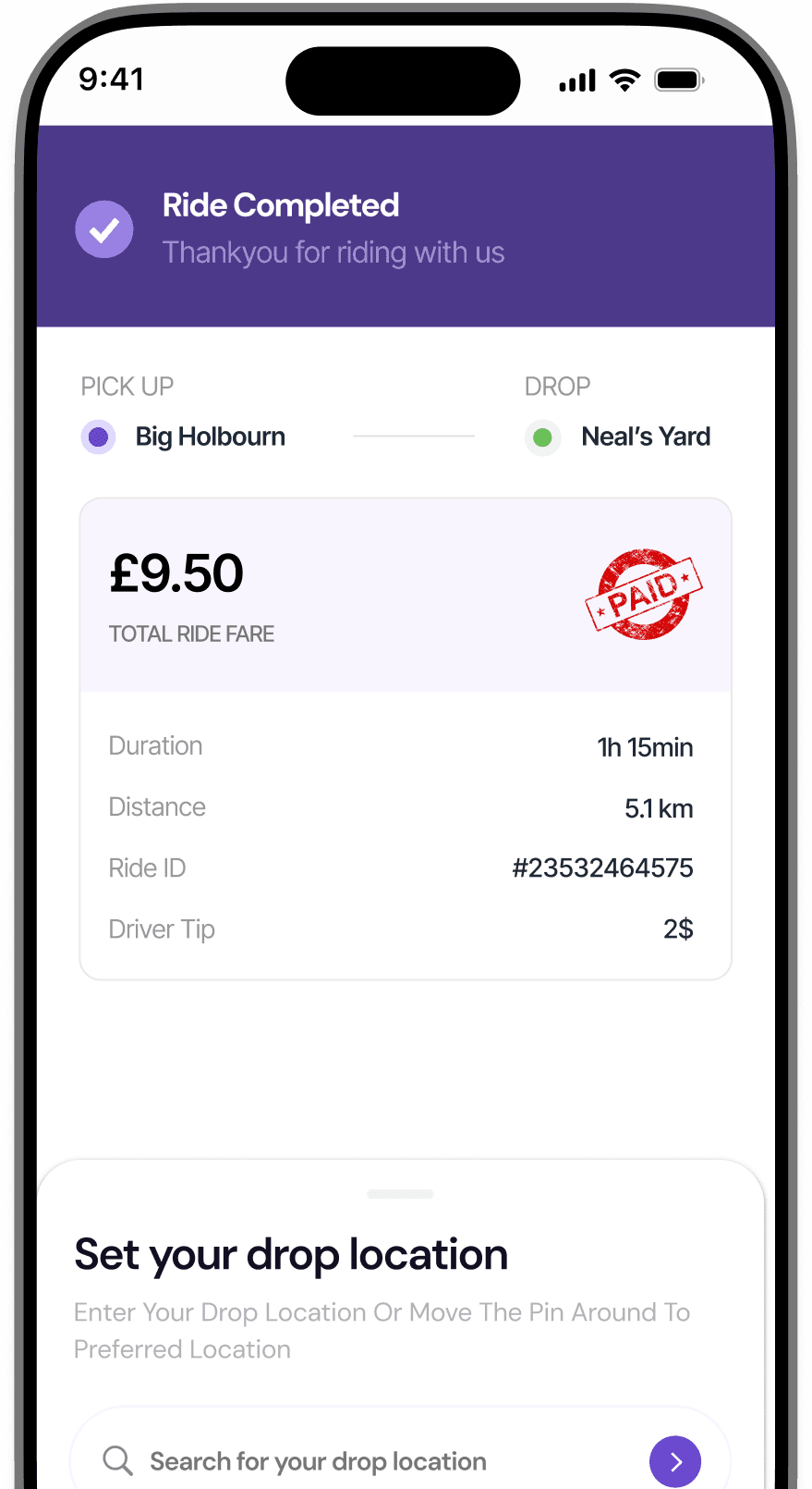Send your live location and ride details to friends or family via a shareable link.